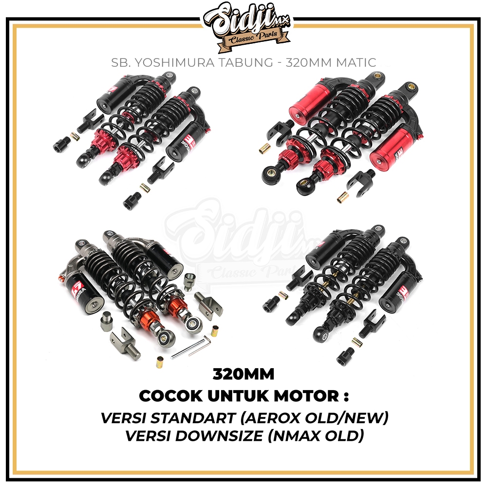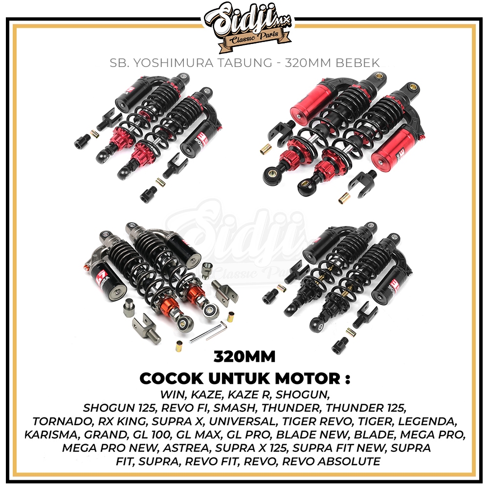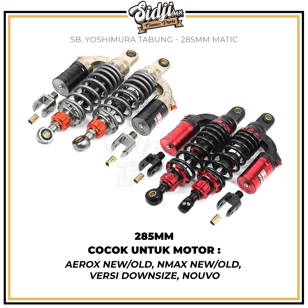 Shockbreaker Shock Belakang Yoshimura Tabung 280mm 285 mm 320mm 340mm Bebek Matic Plus Anting Shock Double Tabung Atas J