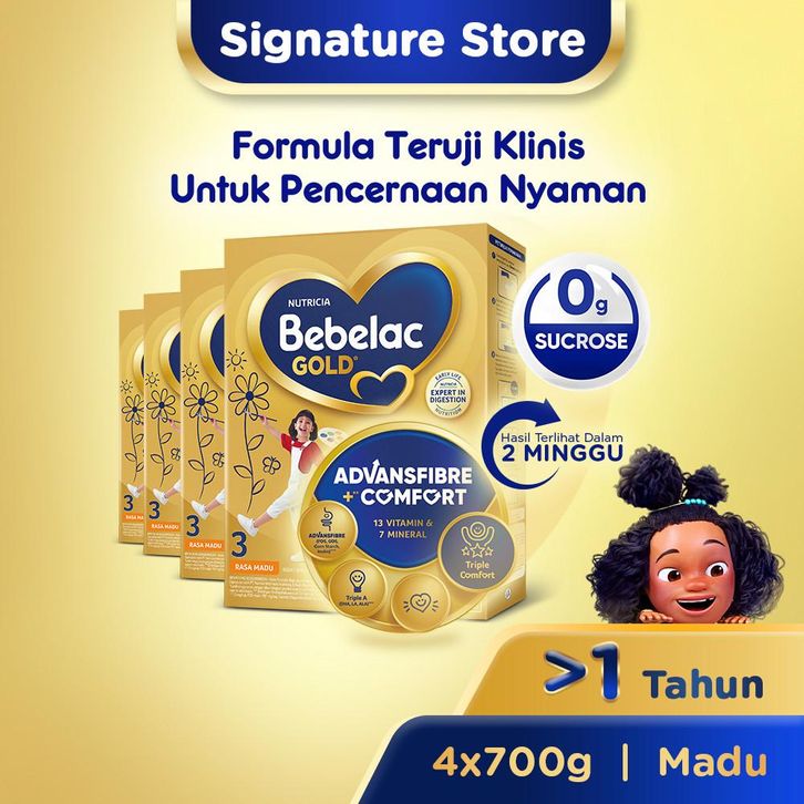 Bebelac Gold 3 Madu 700x4 gr – Formula Teruji Klinis untuk Pencernaan Nyaman