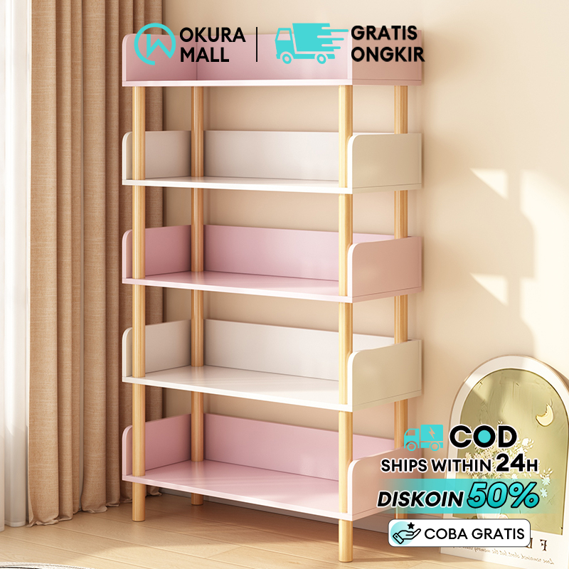 Rak Buku Kayu 6 Susun Rak Susun Kayu merah muda putih Rak Buku Kamar Anak Rak Buku Penyimpanan