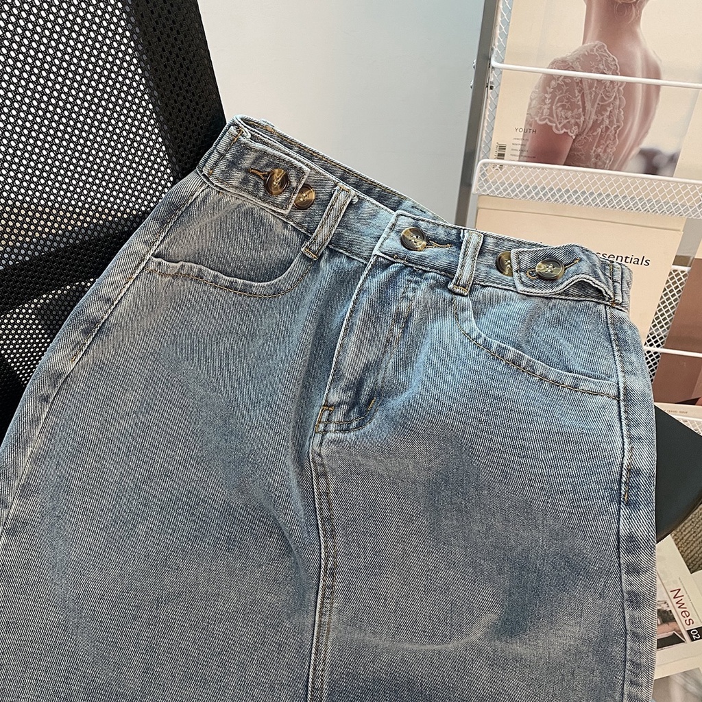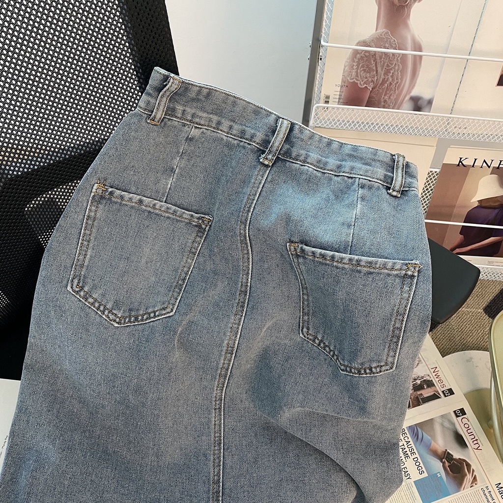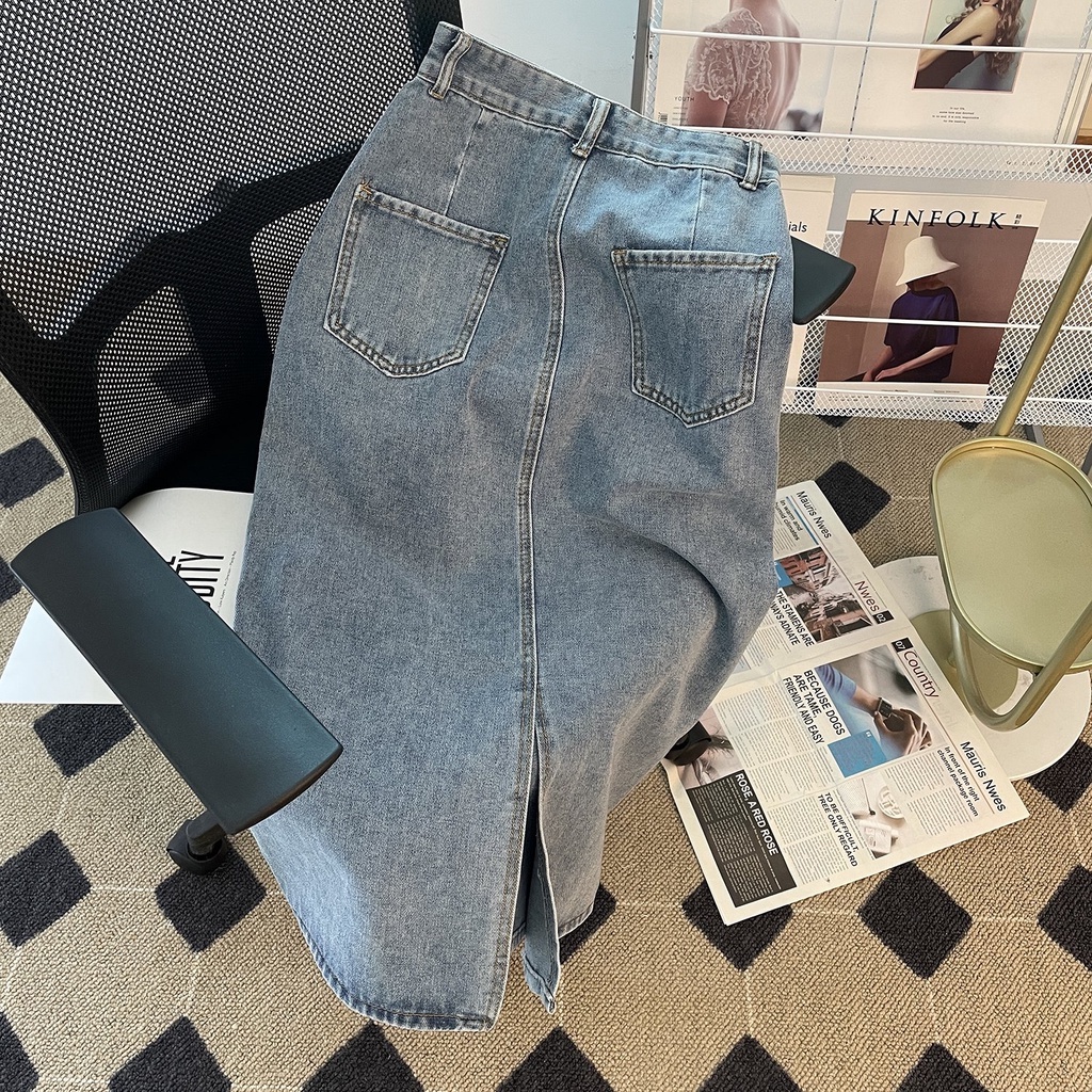 ROK JEANS WANITA KEMBALI SPLIT ROK JEANS WANITA A-LINE ROK JEANS WANITA