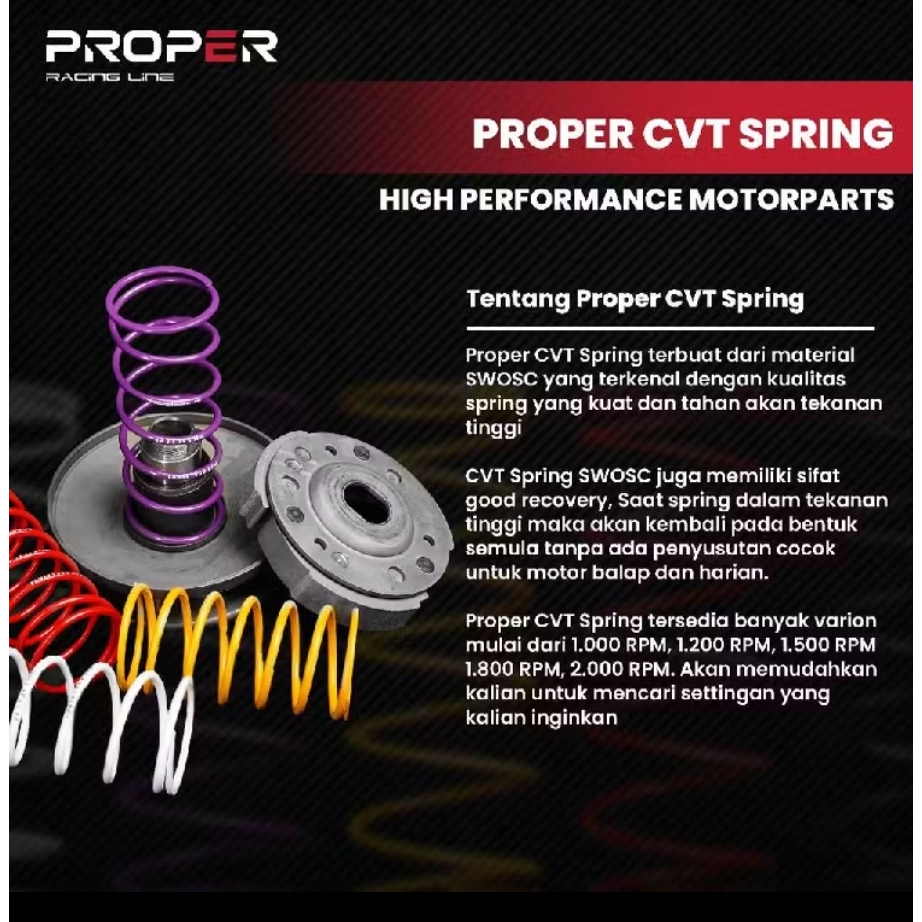 PER CVT PROPER RACING LINE 1000 1200 1500 1800 RPM UNTUK VARIO, BEAT, SCOOPY, PCX, ADV, STYLO, GENIO, NMAX, AEROX, LEXI,