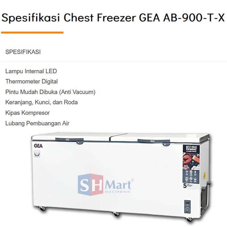 CHEST FREEZER 2 PINTU GEA AB-900TX AB900TX KAPASITAS 865 LITER FREEZER BOX PETI PEMBEKU GARANSI RESMI MEDAN PROMO