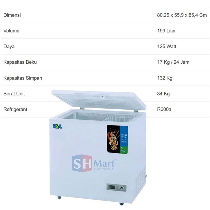 CHEST FREEZER RSA 200 LITER CF-210 / FREEZER BOX RSA CF 210 / CF210 GARANSI RESMI PROMO