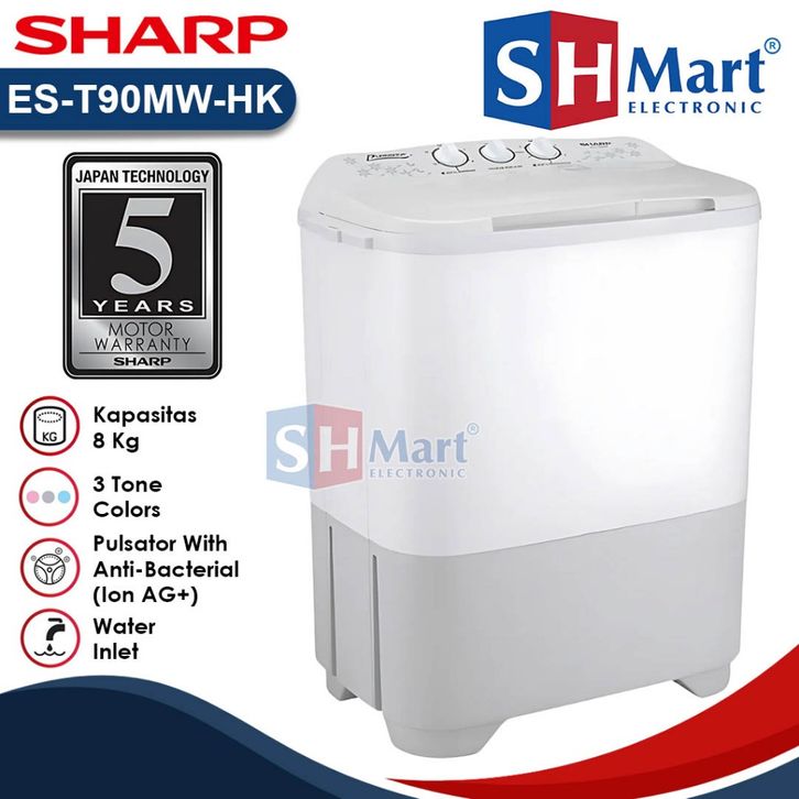 MESIN CUCI SHARP 2 TABUNG KAPASITAS 9 KG ES-T90MW / EST90MW GARANSI RESMI MEDAN PROMO