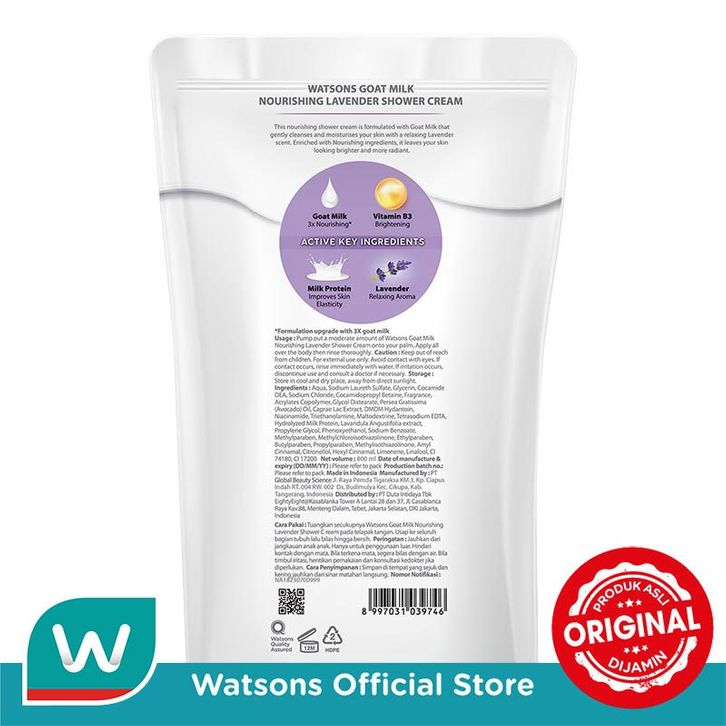 Watsons Goat Milk Nourishing Lavender Shower Cream Pouch 800ml