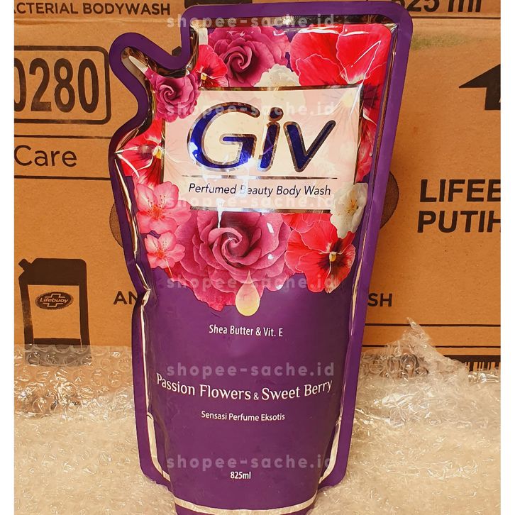 GIV Sabun Mandi Cair 825ml Body Wash GIV Ungu Passion Flowers & Sweet Berry GIV Putih Mulberry &