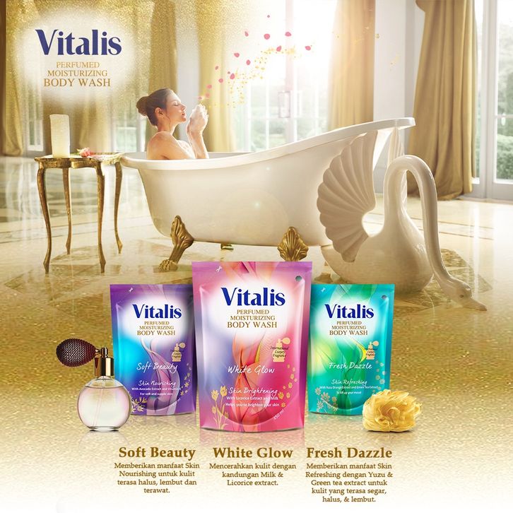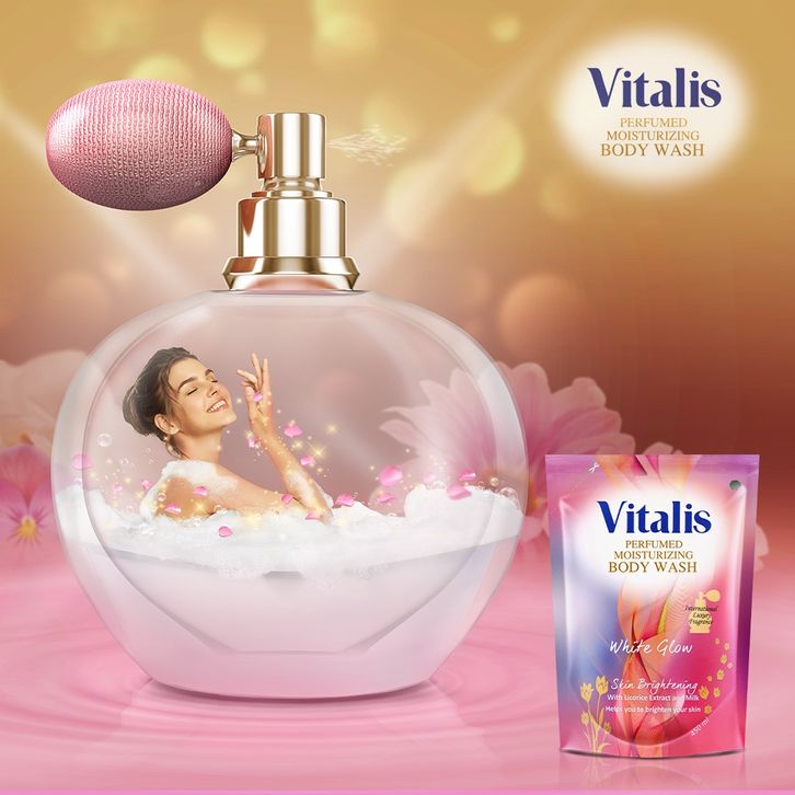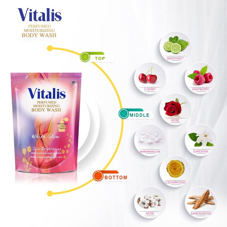 Vitalis Perfumed Moisturizing Body Wash White Glow Refill 450ml - Sabun Mandi Cair Pencerah Kulit