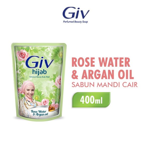 Giv White Hijab Anti Oksidan Sabun Mandi Cair Rose Water & Argan Oil Pouch 400 ml