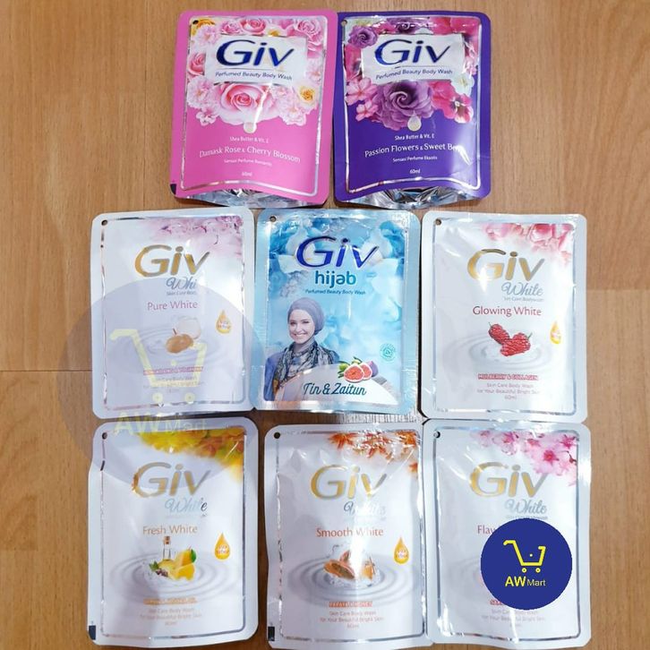 SABUN GIV BODY WASH LIQUID CAIR PERAWATAN TUBUH POUCH 60 ML ECERAN BODY WASH GIVE BEAUTY WHITE SOAP