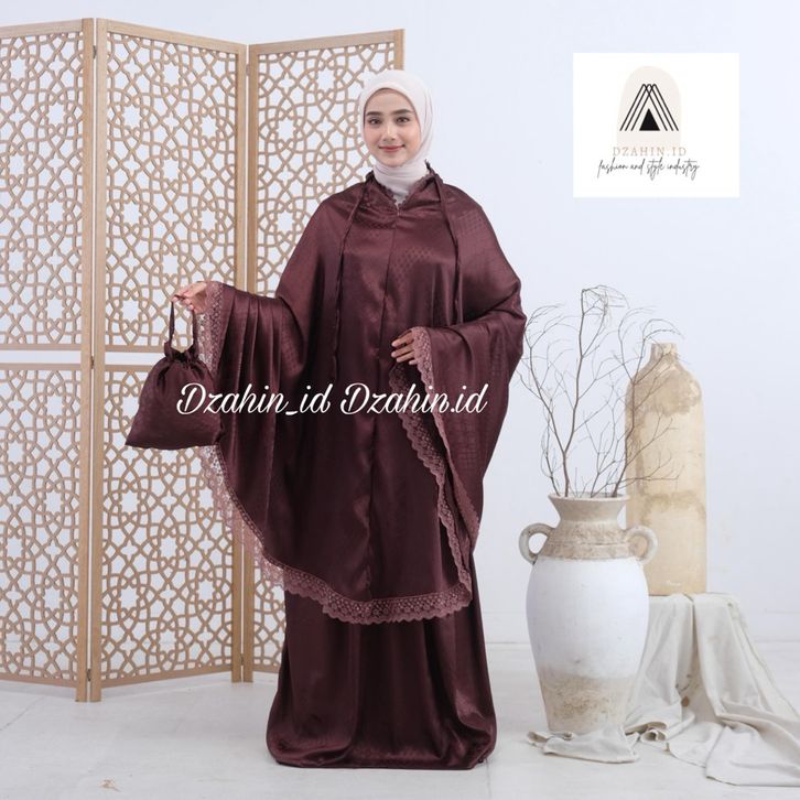 Dzahin - Mukena Kayyana Sutra Motif Terbaru 2in1 Resleting Di Dagu Mewah Nyaman Dewasa Silky