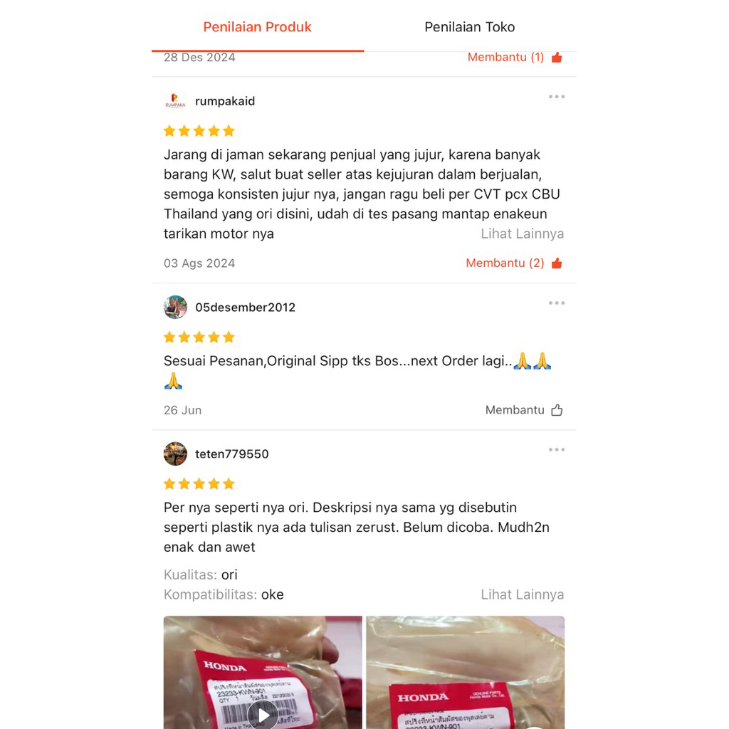 Per Cvt Pcx Thailand Original 100% Genuine Part 23233-KWN-901