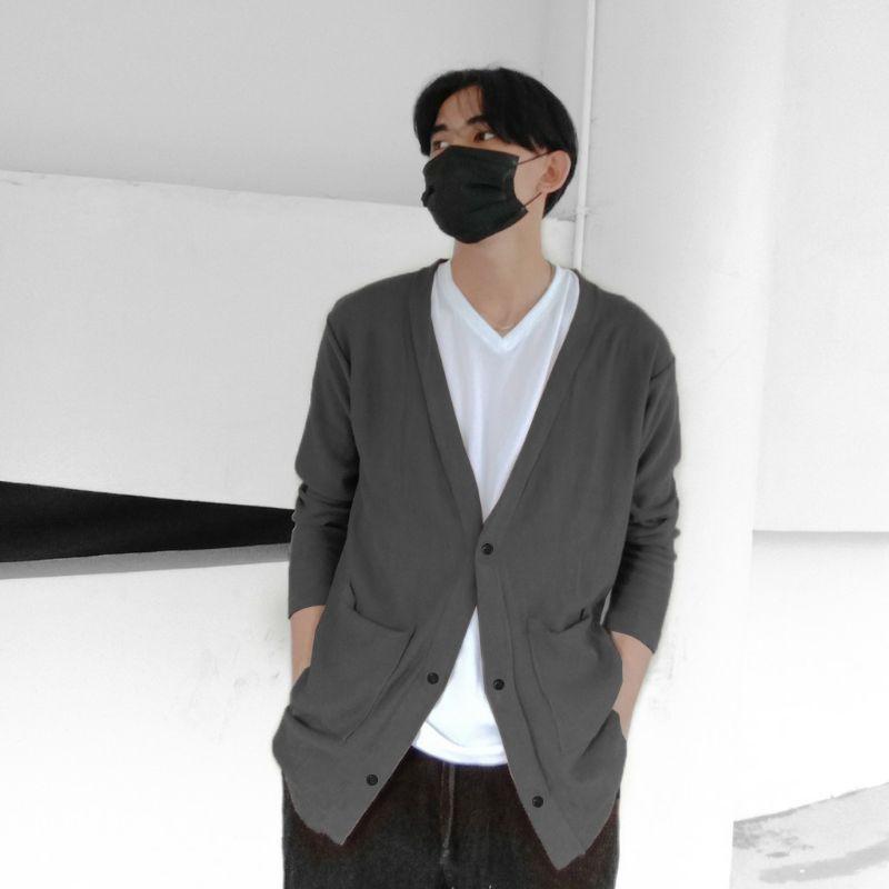 Outwear Cardigan Pria Flece Outwear Kancing Tebal Kardigan Kancing Outer Pria Size L XL