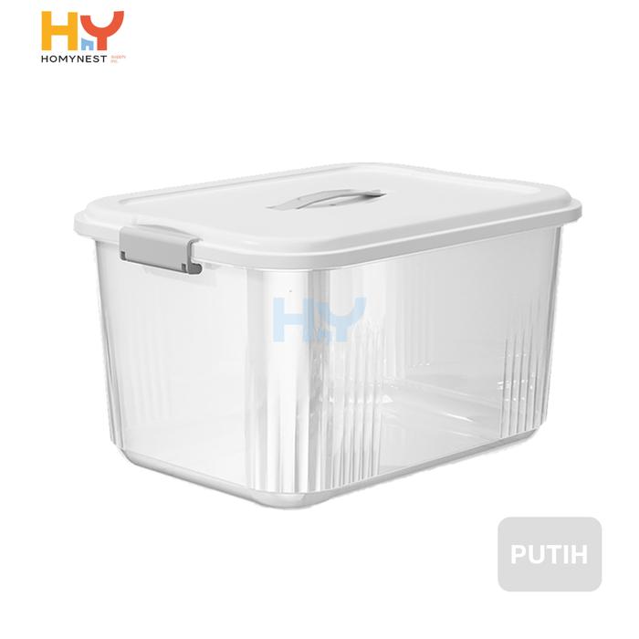 HOMYNEST Box Container Kotak Storage Wadah Transparan Jumbo Besar Handle Double Lock Berkualitas - Putih (S)