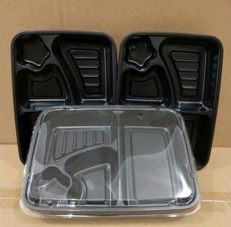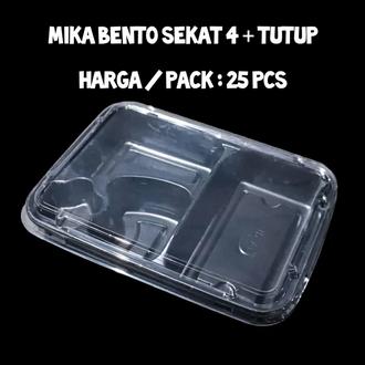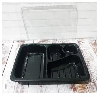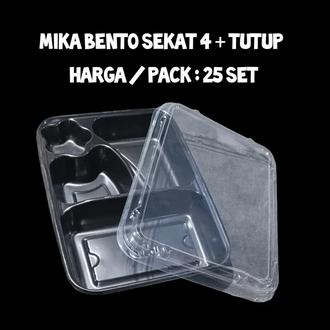Mika Bento Box Sekat 4 Isi 25 Set Tray Bento Mika Lunch Kotak Catering Hitam 25set
