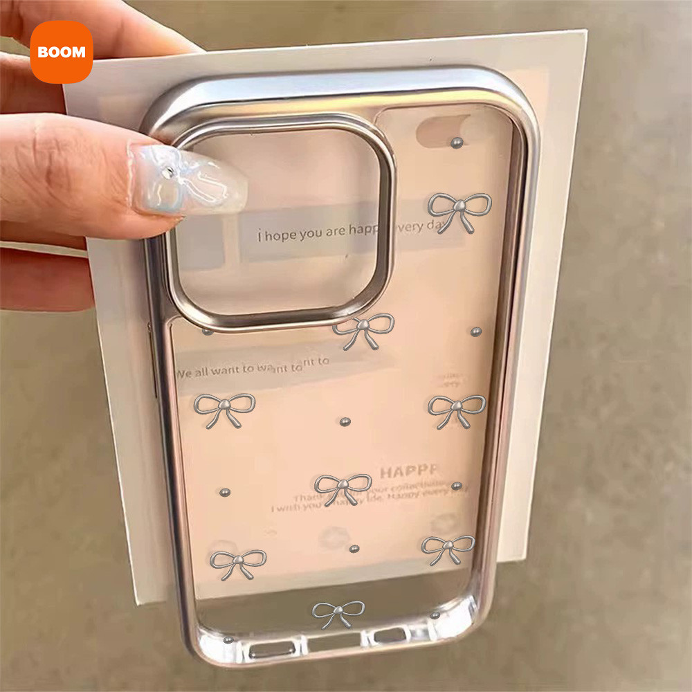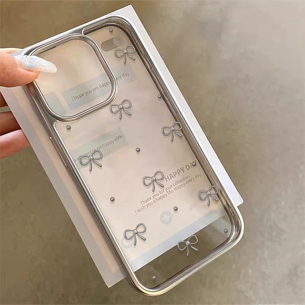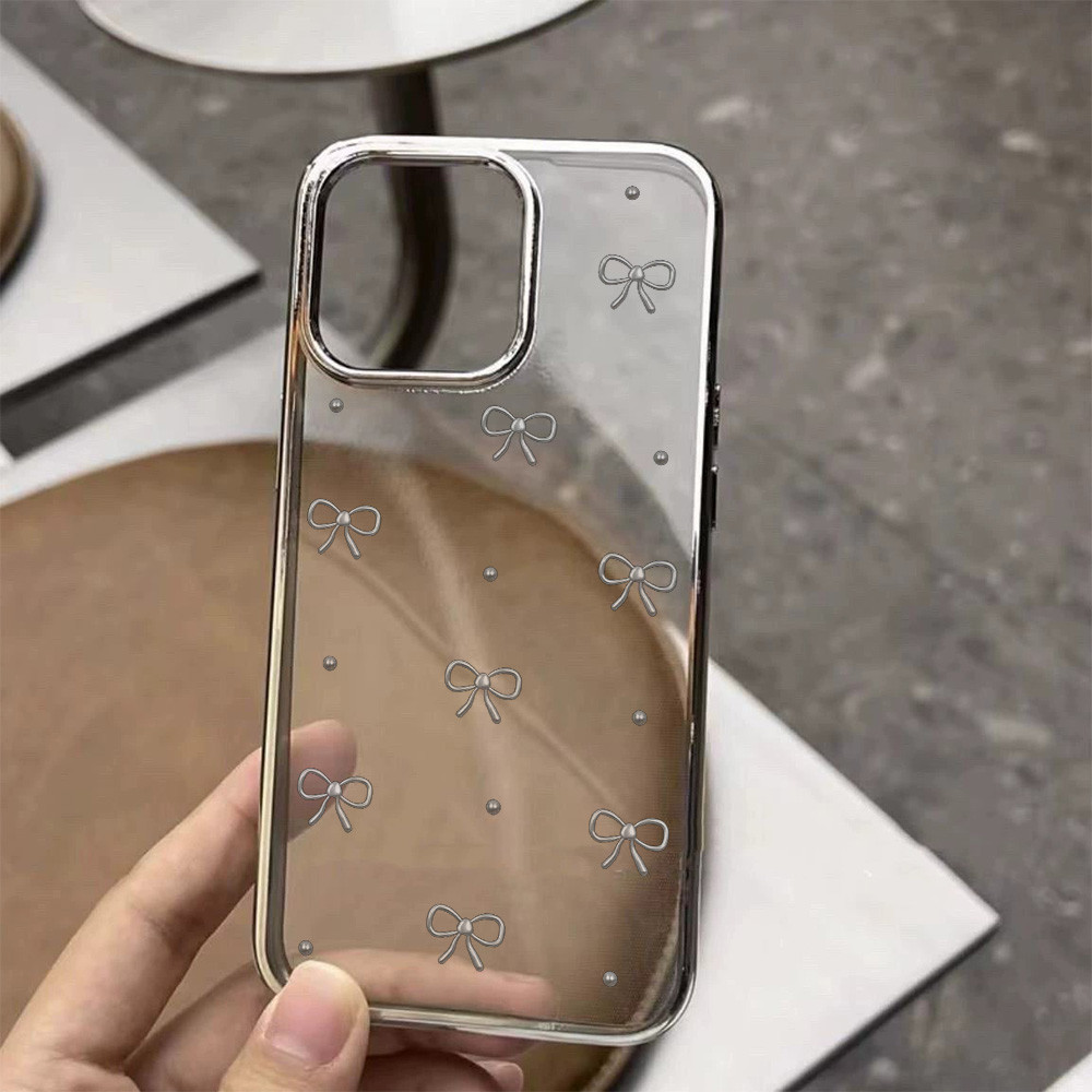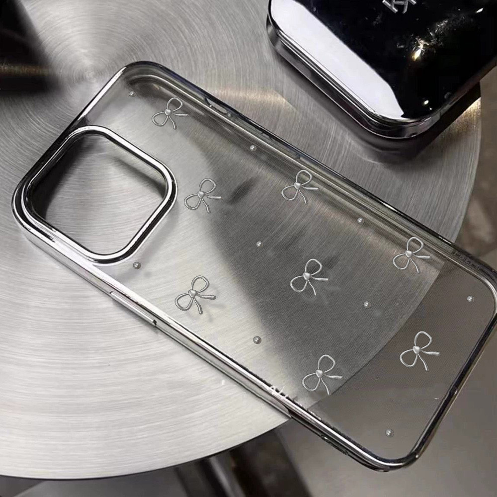 Climbup.case Silver bow casing For iPhone 15 14 13 12 11 16 PRO 11PROMAX 7 8 PLUS X XS XR MAX PLUS PRO Silver