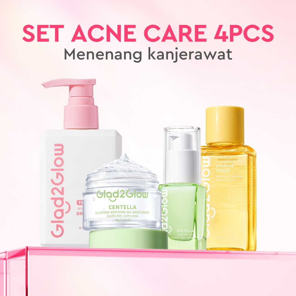 GLAD 2 GLOW OFFICIAL - BUNDLE 4 IN 1 PAKET SKINCARE - MOISTURIZER+SERUM+CLEANSER+TONER - MENCERAHKAN ORIGINAL STORE G2G