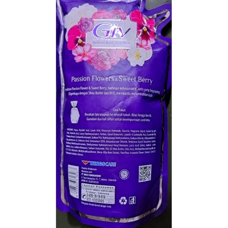 GIV/NUVO 825ml l/400ml sabun mandi cair Passion Flowers & Sweet Berry/ Glowing White/ Mild/Total