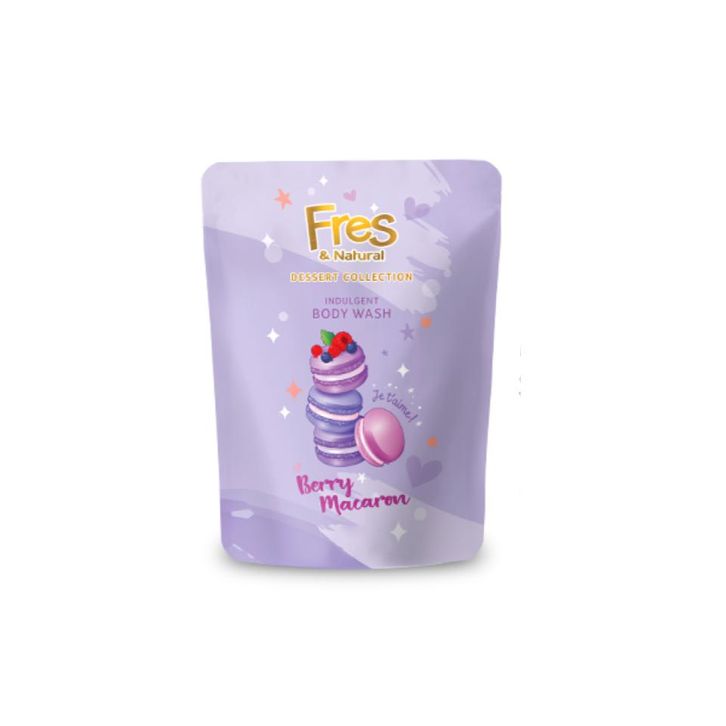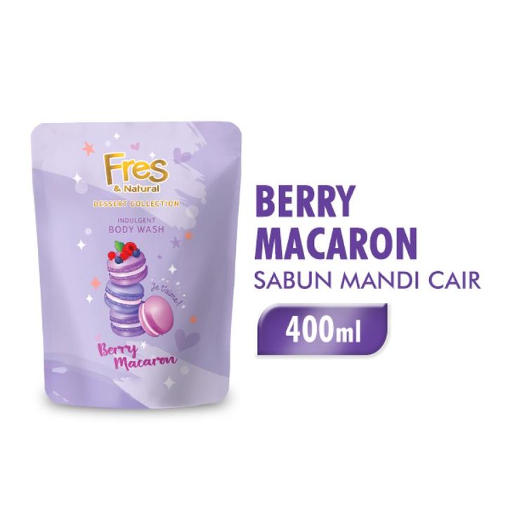 Fres & Natural Sabun Mandi Cair Longlasting Fragrance Berry Macaron Pouch 400 ml