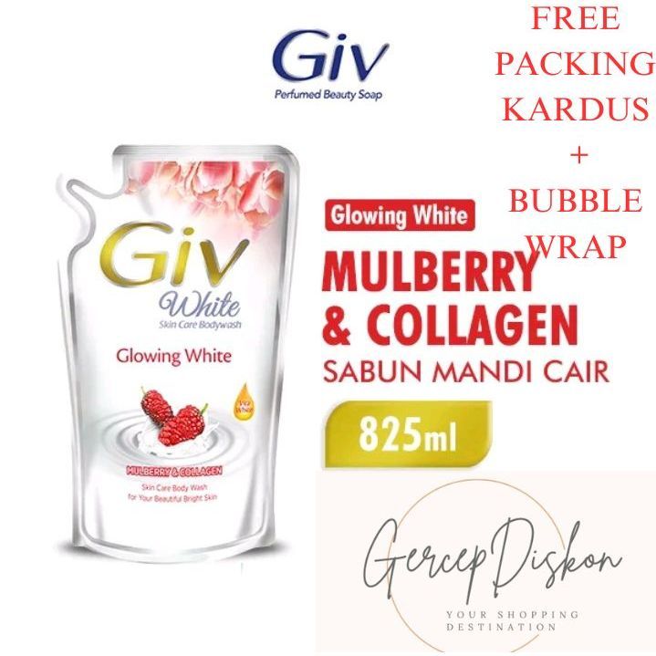 [TERMURAH] KEMASAN BARU GIV WHITE Liquid Soap SABUN MANDI CAIR MULBERRY POUCH 825 ML