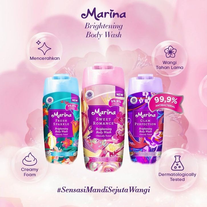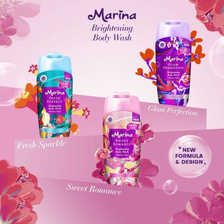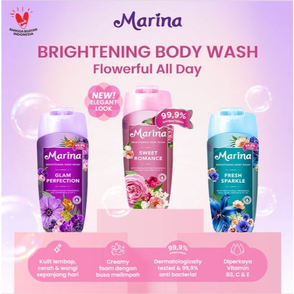 Marina Brightening Body Wash Botol 95ml Sabun Mandi Cair Body Shower Harum Bunga SYE