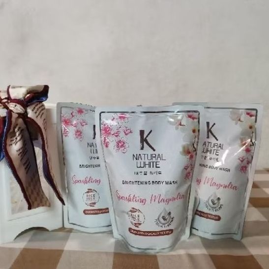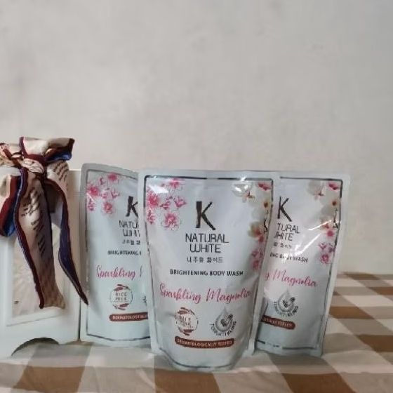 K Natural Brightening White Sabun Mandi Cair Sparkling Magnolia Cotton Flower Pouch 400ml