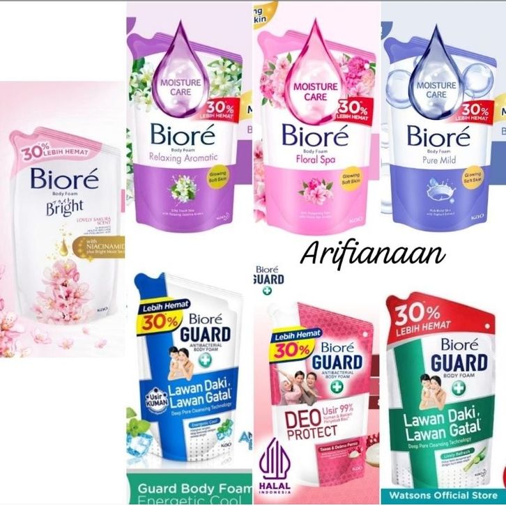 Berry happy 800ml, Biore active 800ml, Biore cool 800ml, Biore delima 800ml, Biore floralspa 800m, Biore puremild 800ml, Biore refresh 800ml, Biore relaxing 800ml, Biore sakura 800ml, Biore zaitun 800ml, Calming nature 800ml