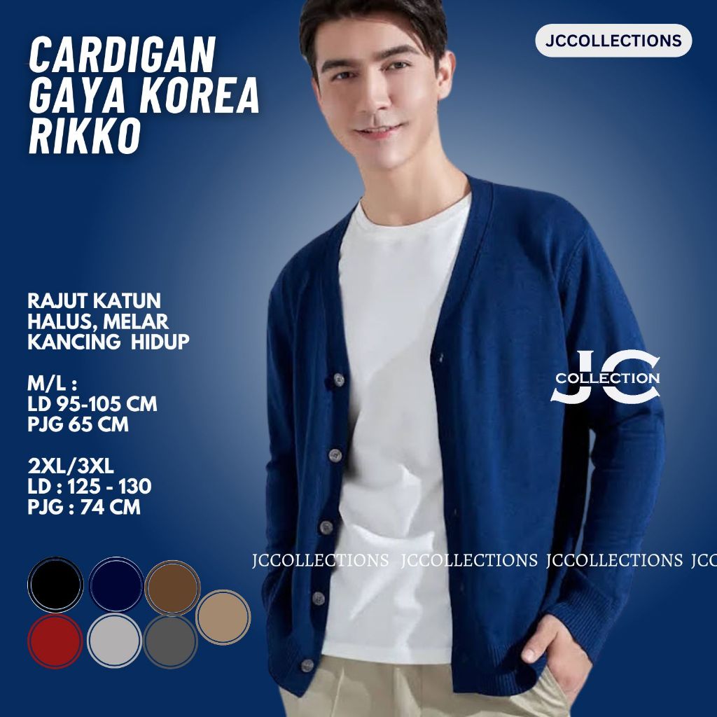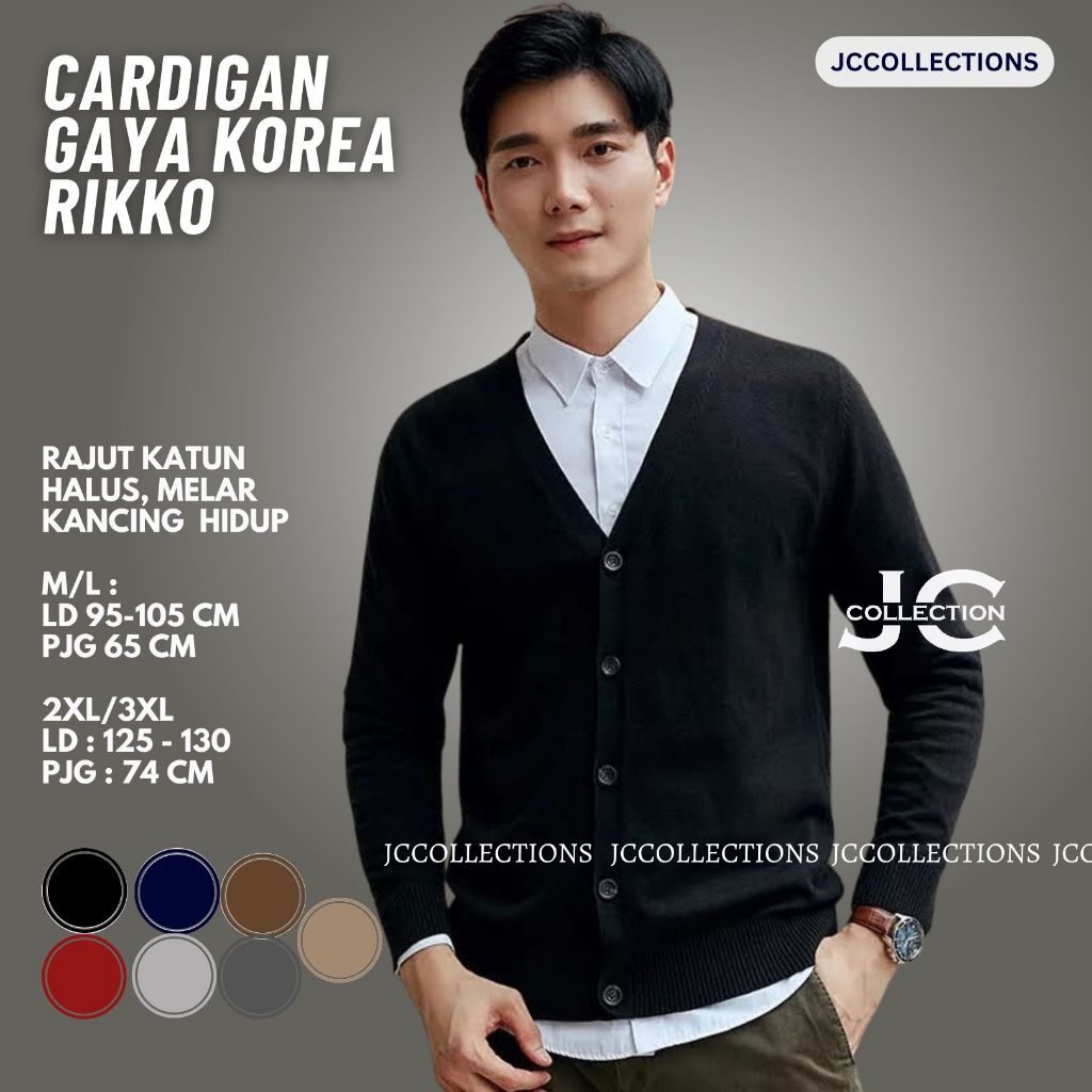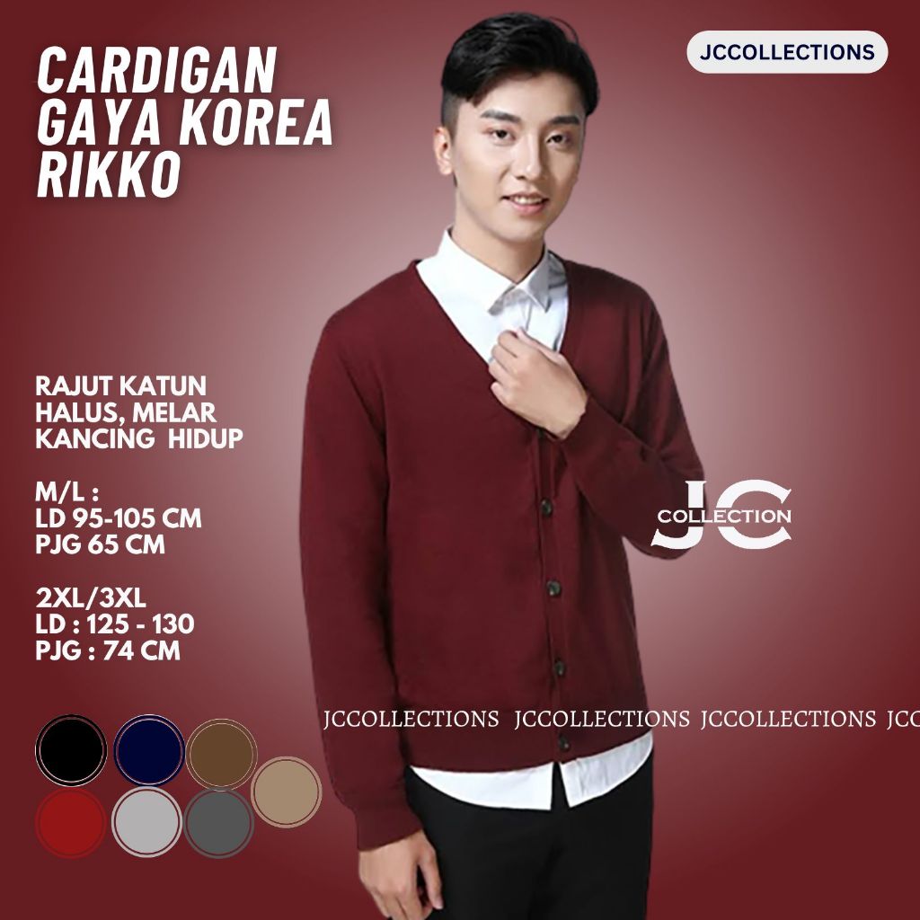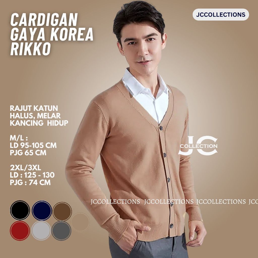 Cardigan Pria Rajut Premium Combed Riko - JCCollections / Kardigan Rajut Pria Korea Style Vneck Rikko