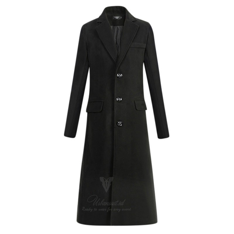 PREMIUM Jas Blazer Jubah Panjang Pria Saku Tutup Long Coat Pria Katun FLECE Korea Black M
