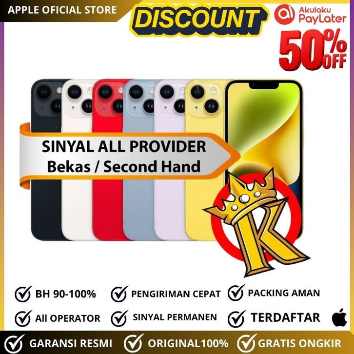 [Mall] Hp Apple Iphone 14 Second 256GB 128GB Inter Normal Bekas Like New