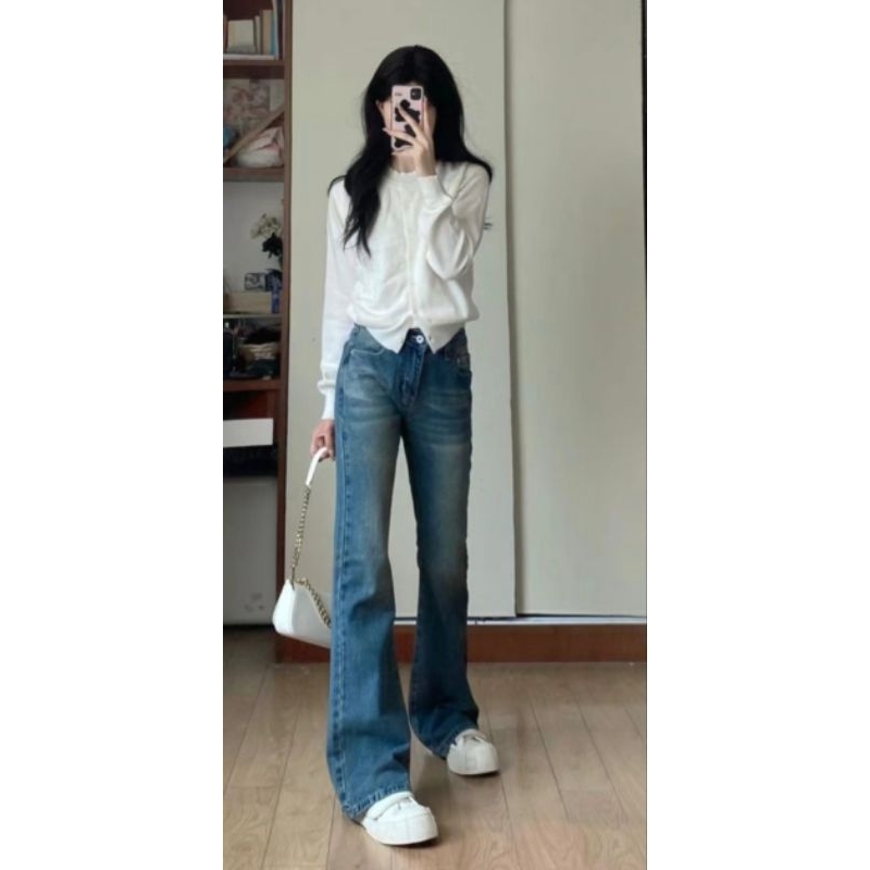 warna retro celana jeans cutbray wanita highwaist loose super jumbo