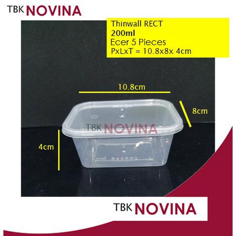 [ECER 5 pieces] Thinwall KOTAK food container box tempat makan plastik kotak nasi sayur lauk buah wadah - 200ml