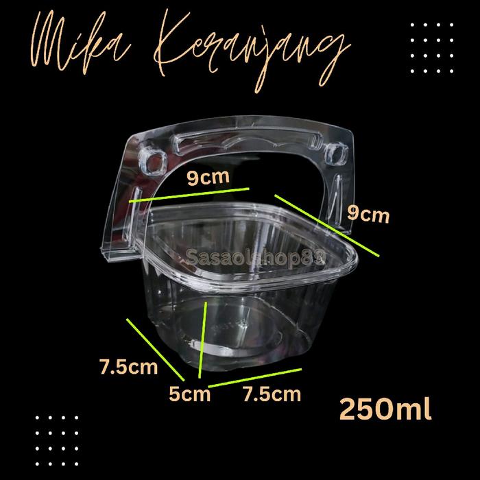 Mika Keranjang (10pc) 500ml 250ml + tutup Mika Dessert Box dengan Handle - 250ML