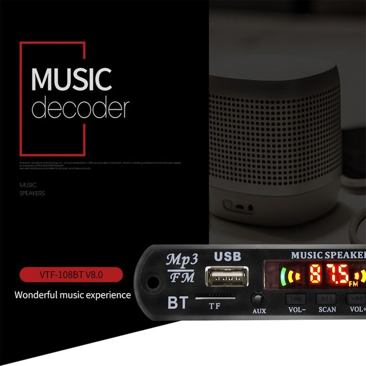 modul Mp3 Kit Modul Bluetooth 5.0 USB AUX Fm Ridio 12V Original VTF-108BT VIRE