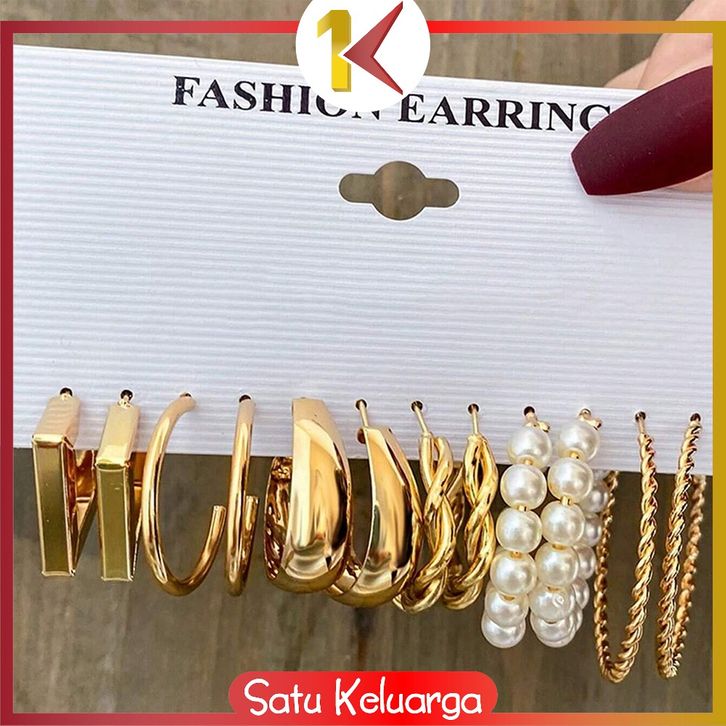 SK-K196 Anting Kotak Bulat Elegan Aksesoris Wanita Gaya Korea / Set Anting Wanita Bulat Fashion