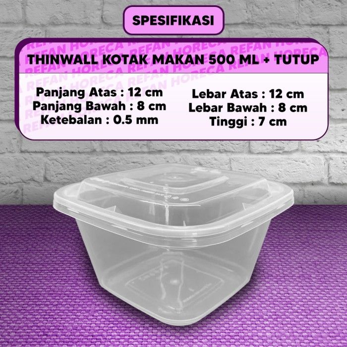 KOTAK MAKAN PERSEGI 500ML / FOOD CONTAINER / THINWALL SQUARE