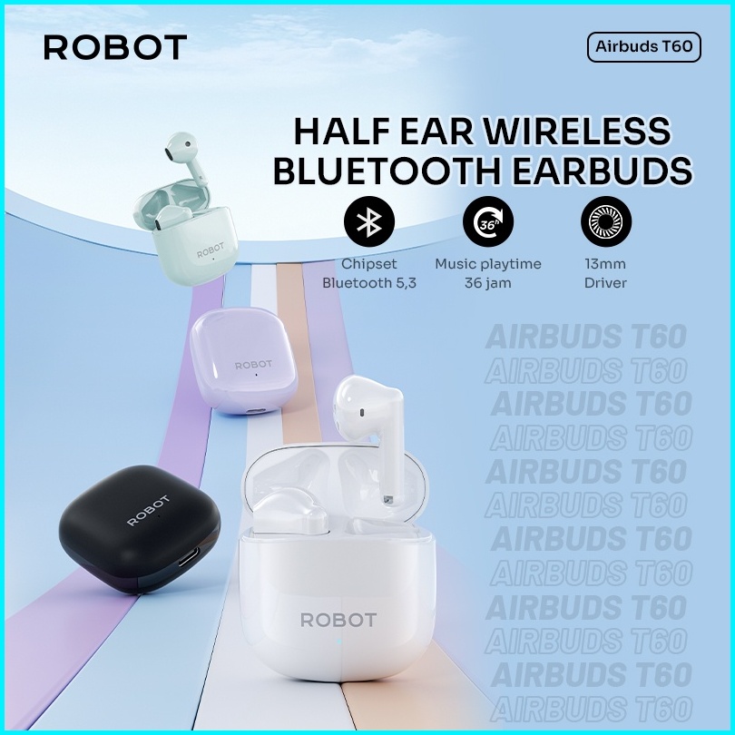 Tws T60 - Handset Headset Handfree Robot Wireless Earphone Airbuds T60 Original Tws Bluetooth Garansi 1 Tahun