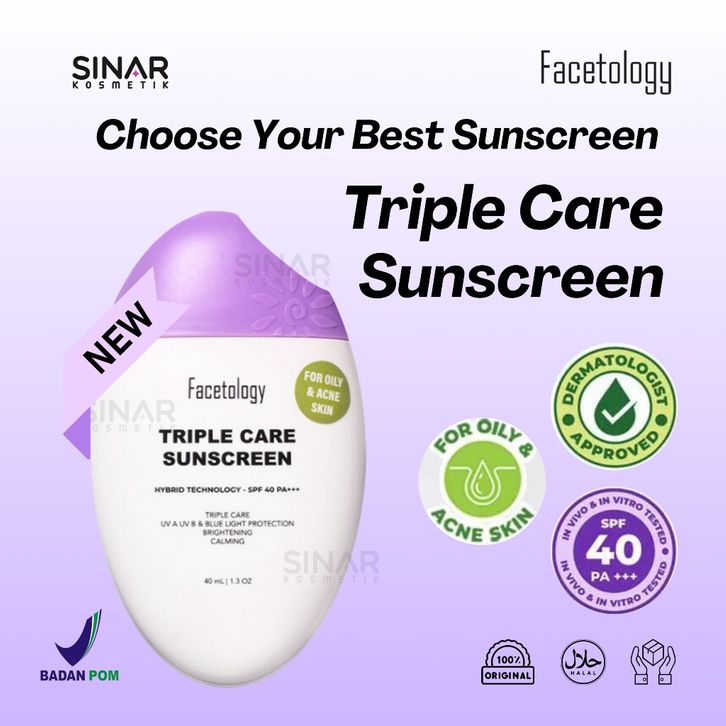 Facetology Triple Care for Oily & Acne Skin - Sunscreen for Acne & Oily Skin SPF 40 PA+++ 40ml / 100ml (NEW) / Acne Calm