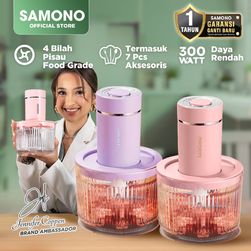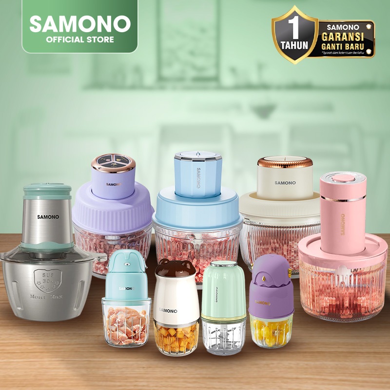 CHOPPER SAMONO 2.5 LITER LOW WATT WADAH KACA PENGHALUS PENGILING DAGING BUMBU BUAH MPASI MIXER BLENDER COOPER COPER