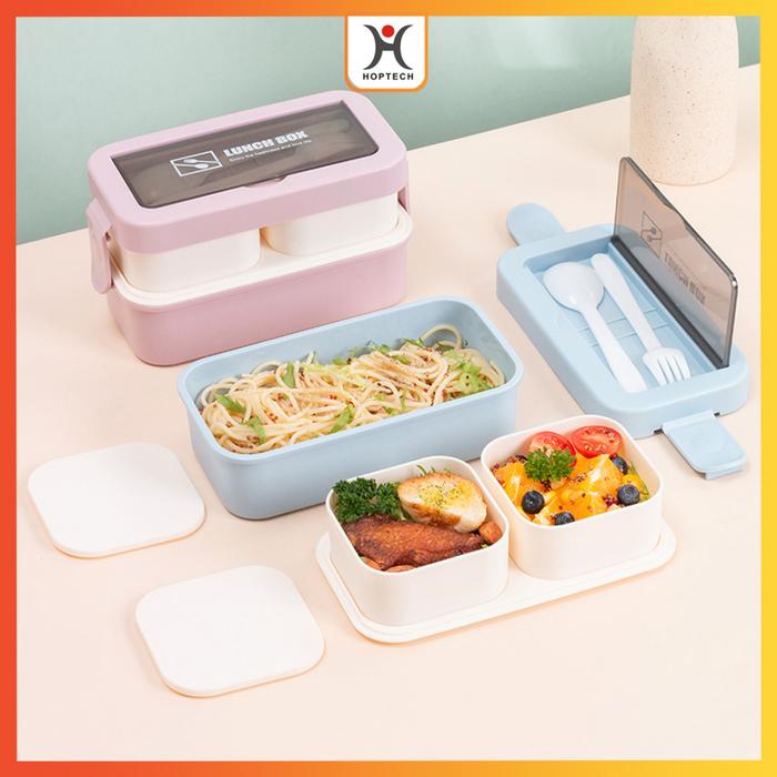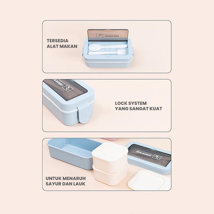 LUNCHBOX KOTAK MAKAN ANTI TUMPAH 2 SUSUN KOTAK BEKAL PREMIUM BPA FREE - PINK