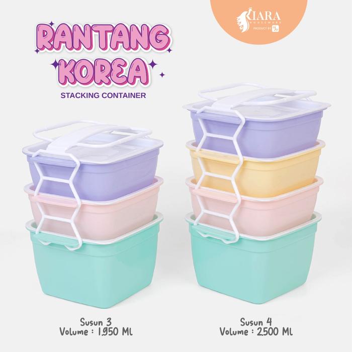 Kiara Rantang Plastik Susun 3 & 4 — Kotak Makan Susun Korea 100% BPA Free Hijau & Pink Ideal untuk Bekal dan Hadiah