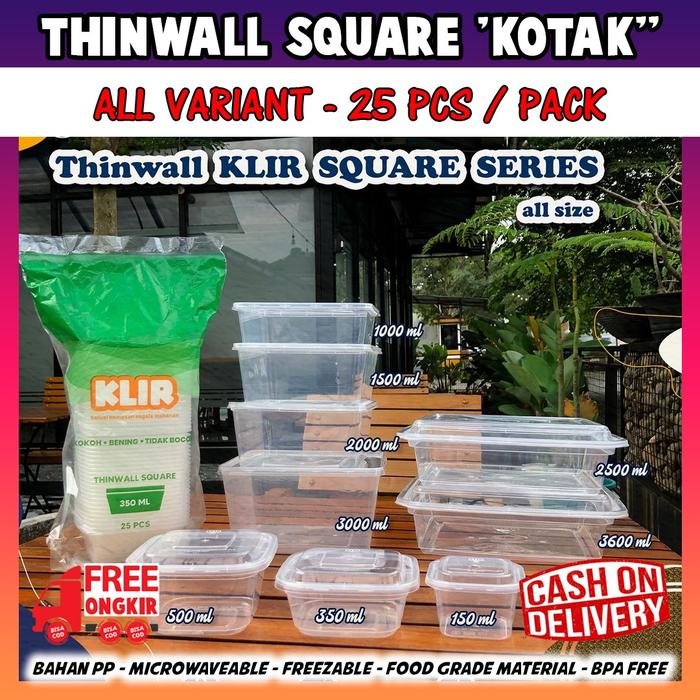 Kotak makan plastik 120-3000 ml / kotak makan plastik square / Thinwall KOTAK KLIR 1 pack 25 pcs anti bocor rapat ANTI