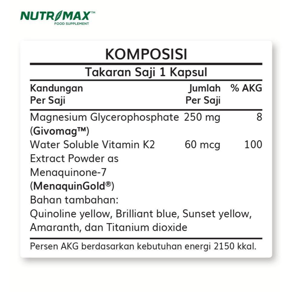 Nutrimax Magnesium Vitamin K2- Magnesium Glycerophosphate 30 Kapsul