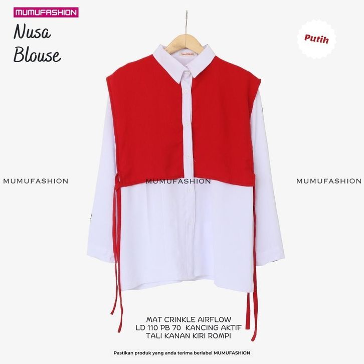 Mumu Blouse Wanita Merah Putih Nusa Series Atasan Hari Kemerdekaan Bahan Crincle Premium