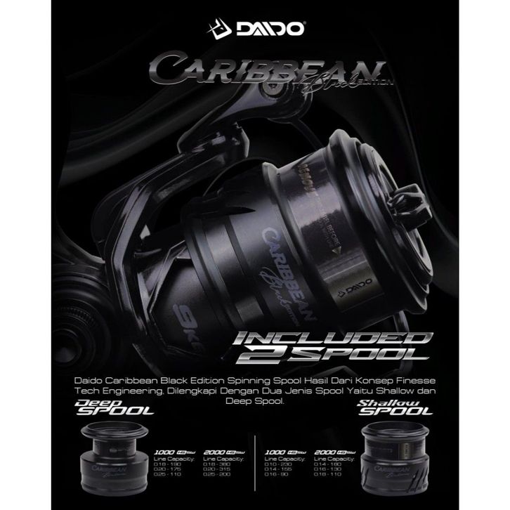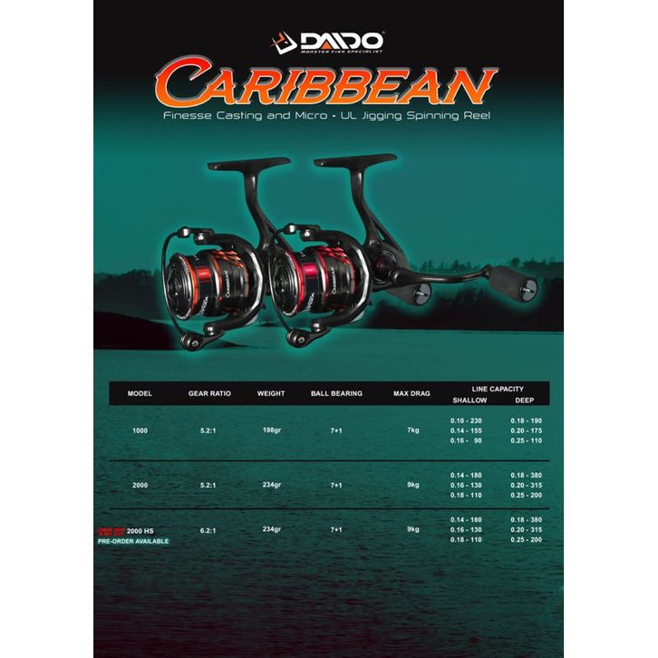 Reel DAIDO CARIBBEAN body carbon 1000 , 2000 HS, 3000 HS bonus spool