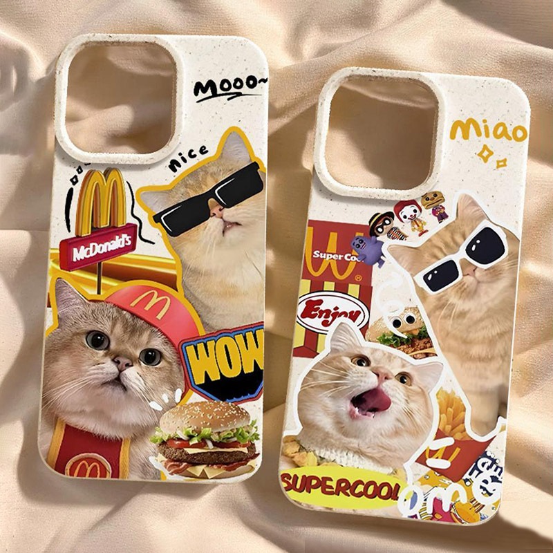 CASE iPhone McD Cat iPhone 7 8 6 6 S Plus 11 13 12 mini Case 14 15 Pro MAX XR XS MAX 7Plus 8Plus SE 2023 Casing Silikon
