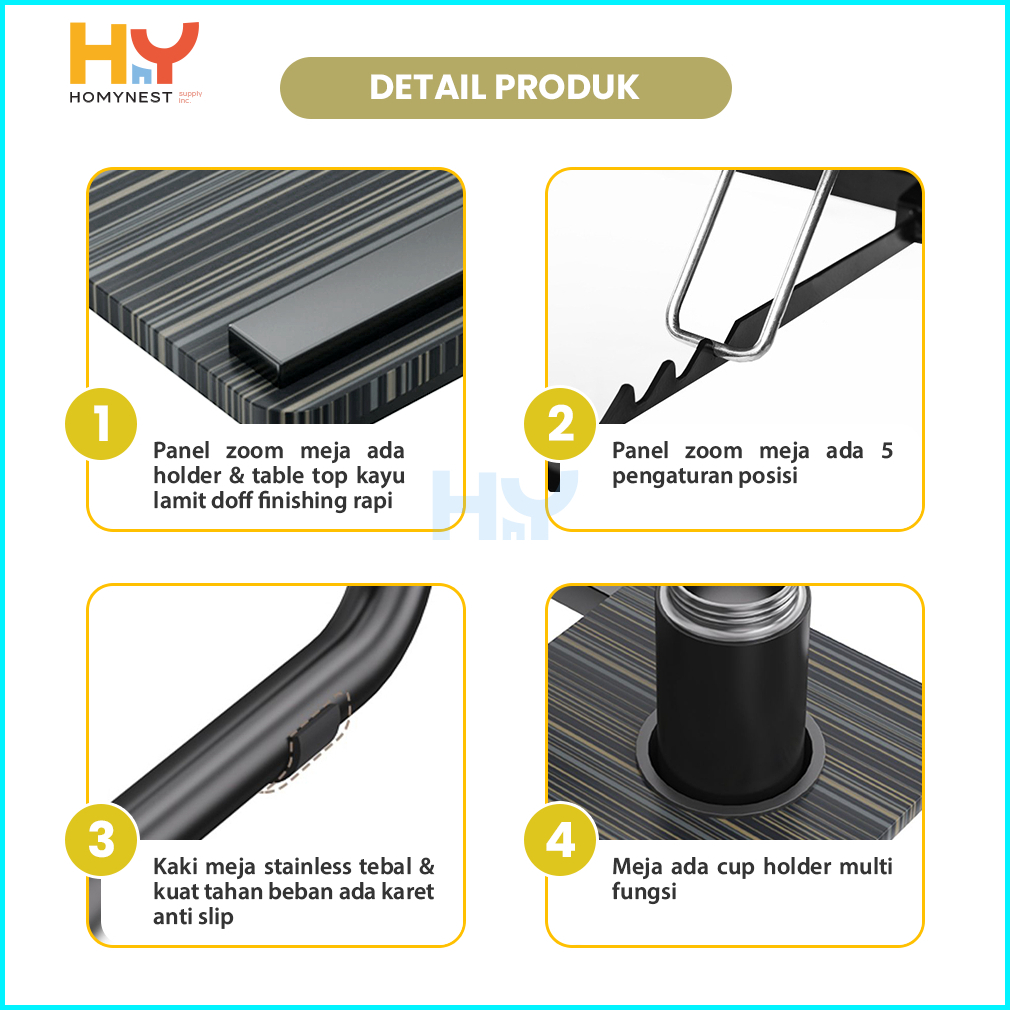 Homynest Meja Laptop Belajar Lipat Foldable Desk Zoomer Serbaguna