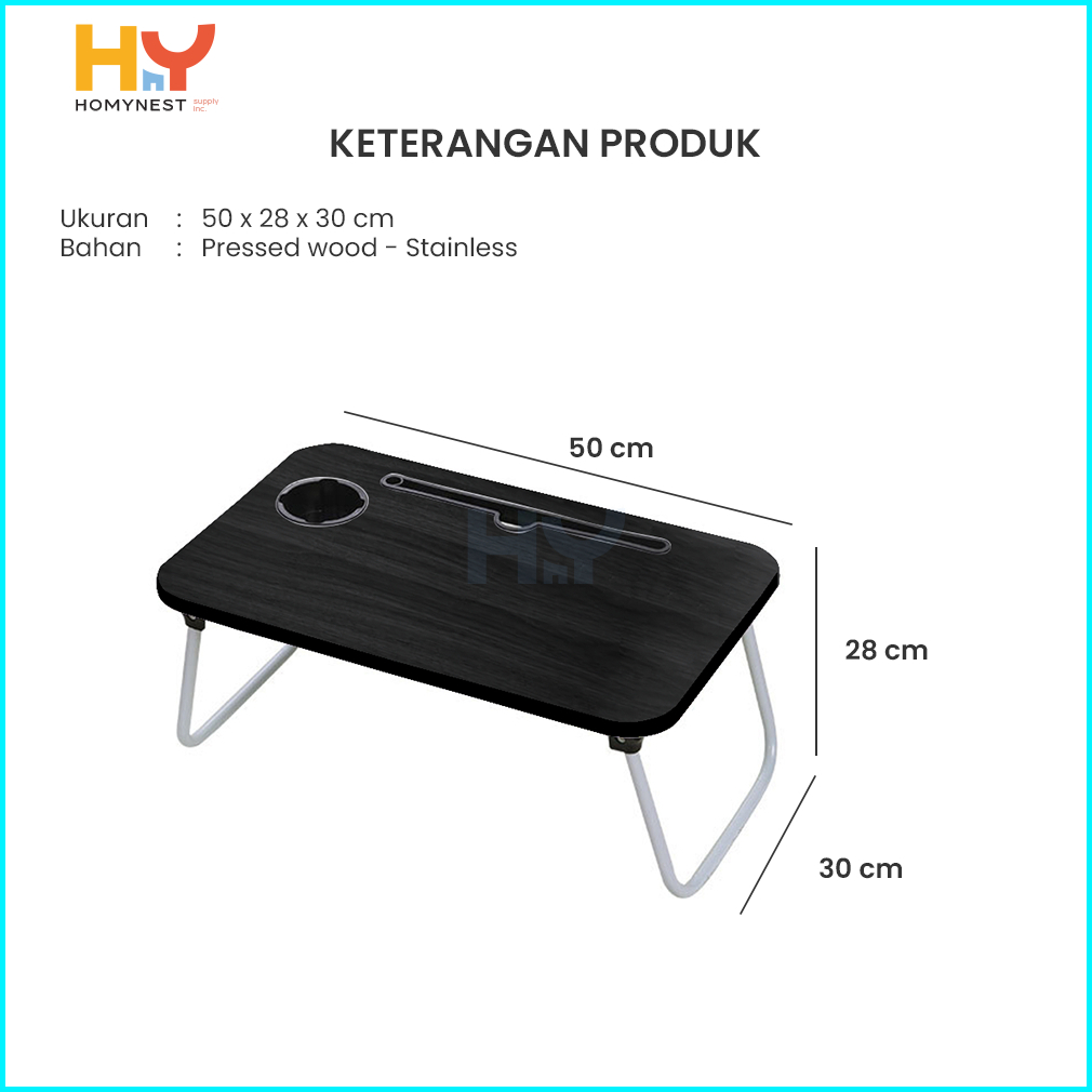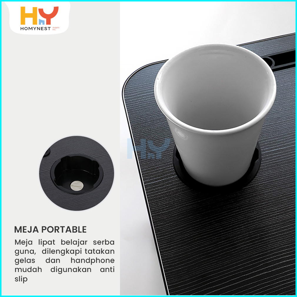 Homynest Meja Belajar Laptop Lipat Portable Kayu Hpl Kaki Besi Kokoh Berkualitas