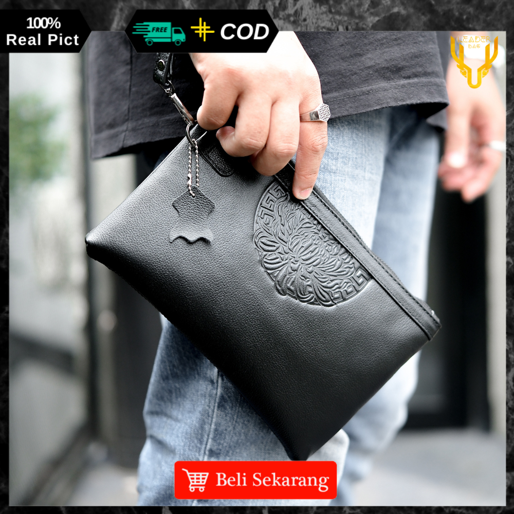 HANDBAG PRIA TAS TANGAN PRIA KULIT SAPI ASLI LEADERBAG HITAM WATERPROOF TAS TANGAN PREMIUM CLUTCH COWOK KEREN LOKI