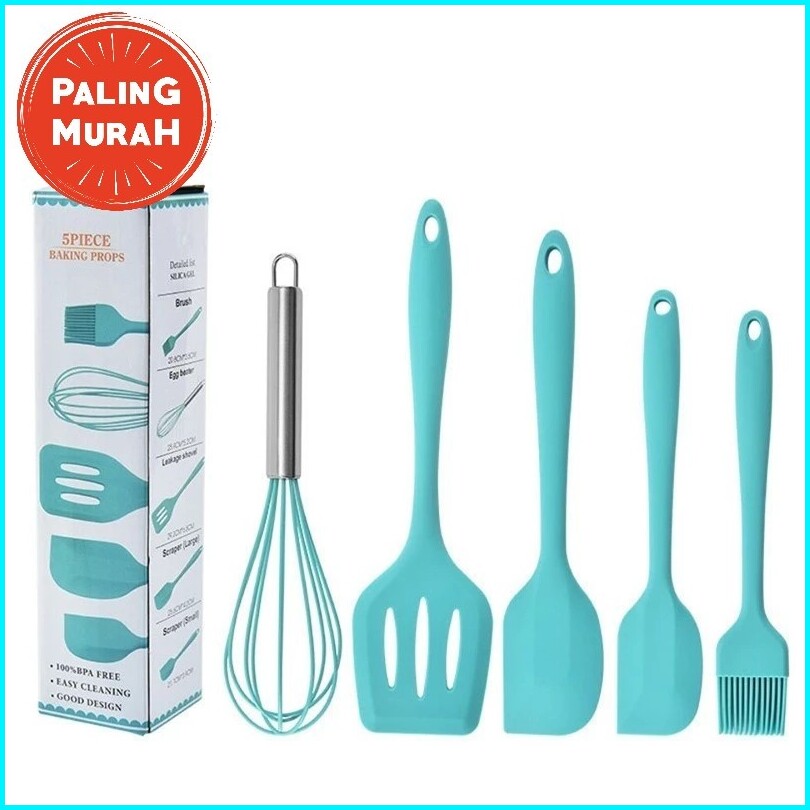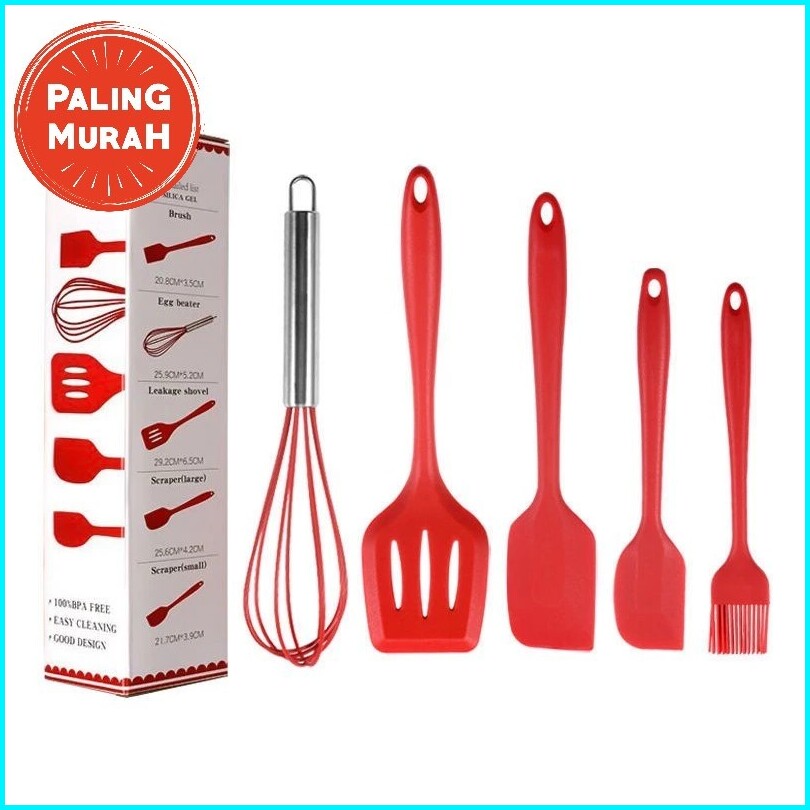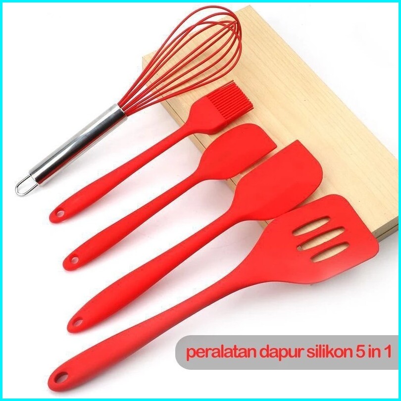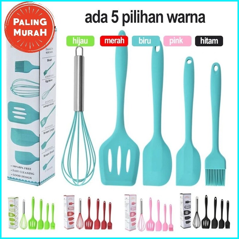 Chocoberry7 Spatula Set Alat Masak 5 In 1 Sutil Scrap Kocokan Silicone Silikon Termurah Berkualitas