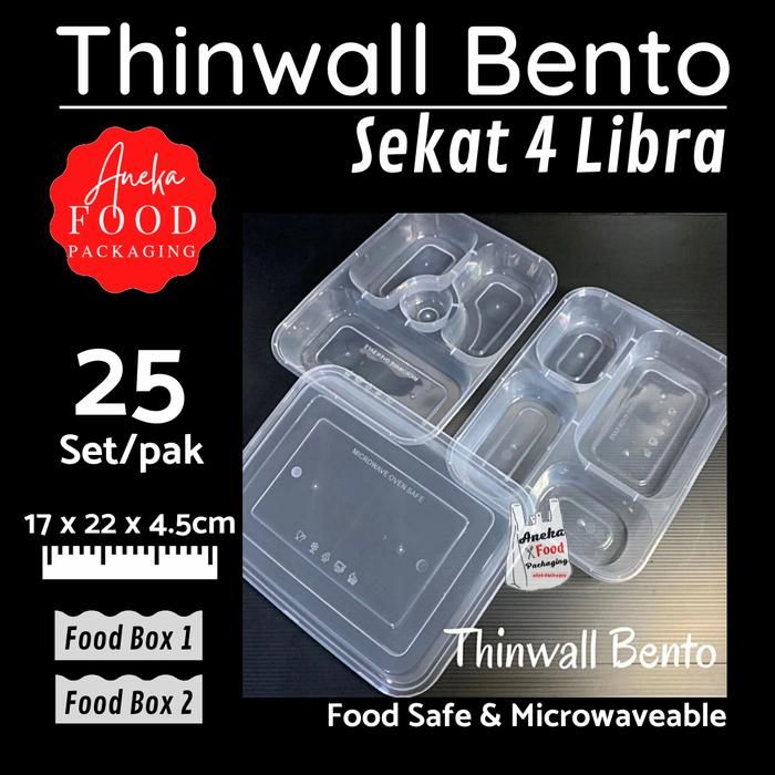 Thinwall/kotak makan bento bening tahan panas sekat 4+tutup - Food Box 2
